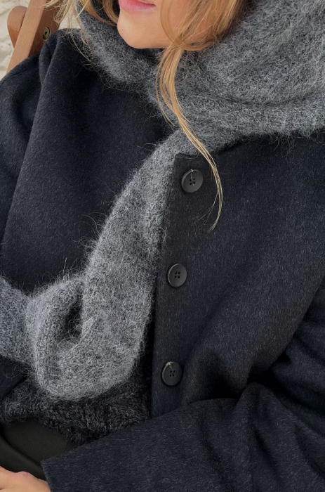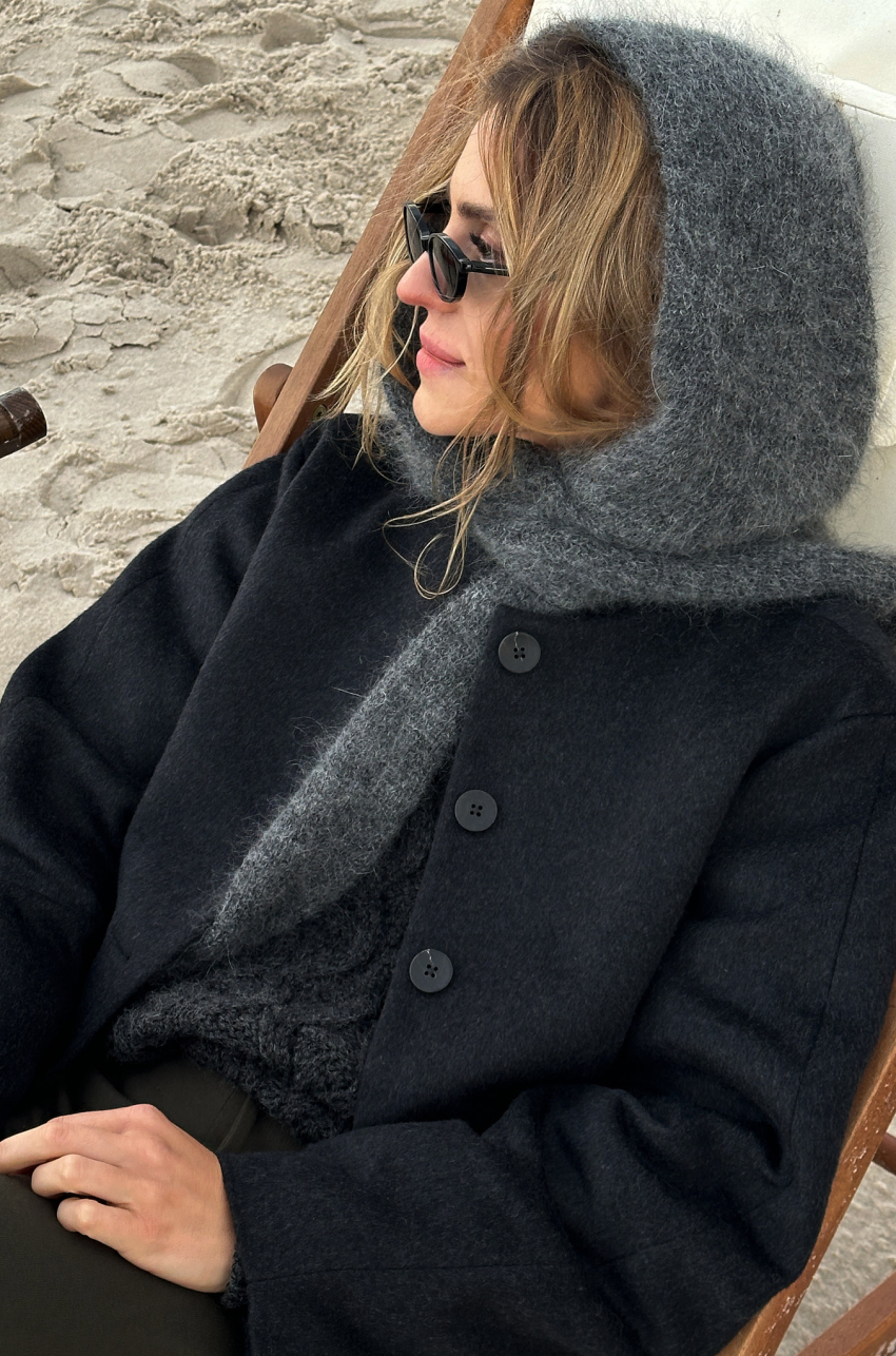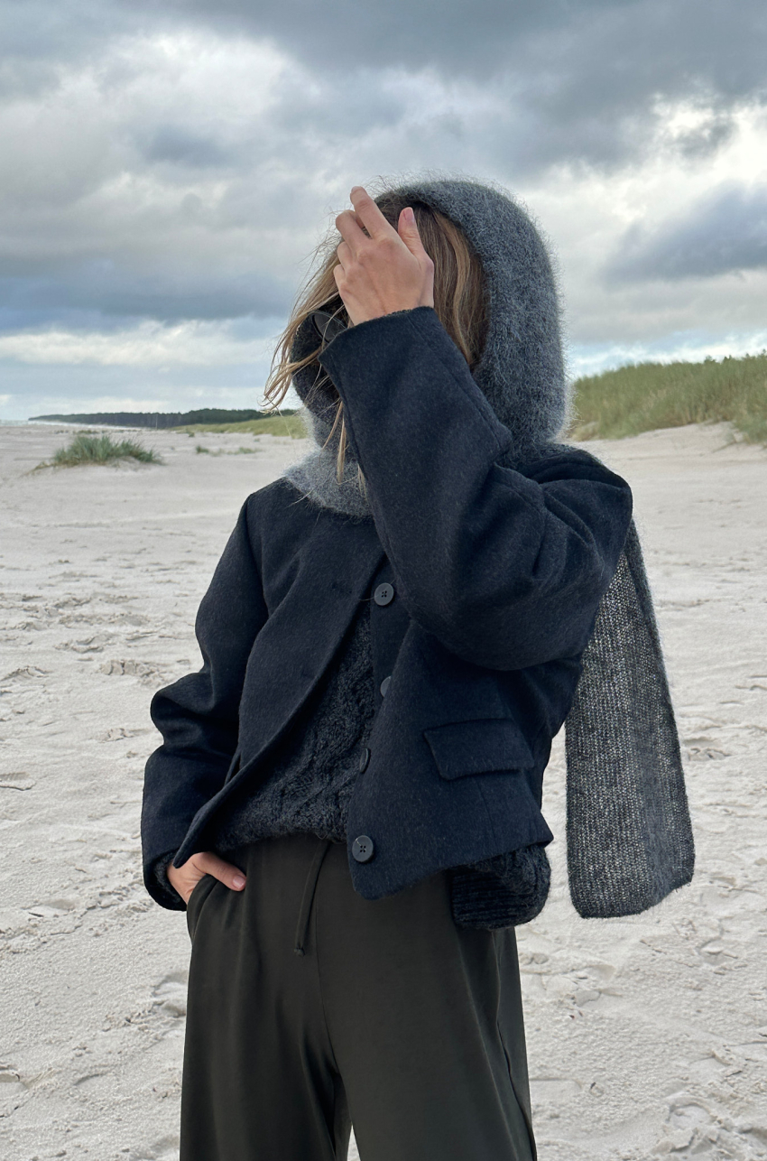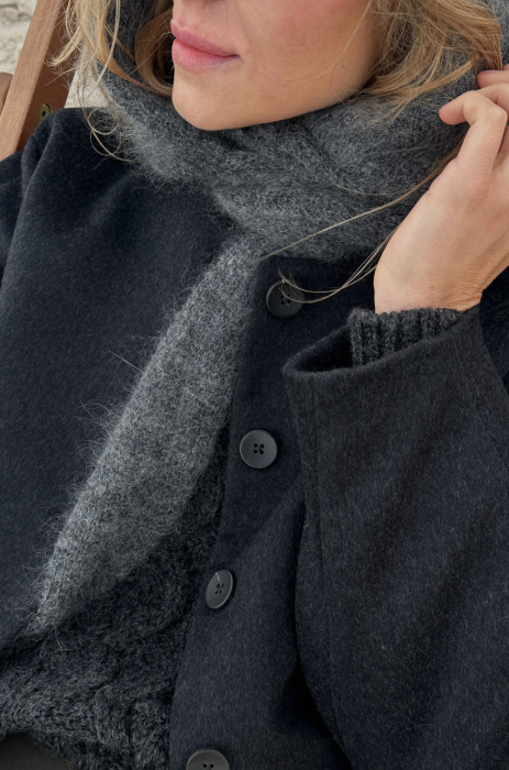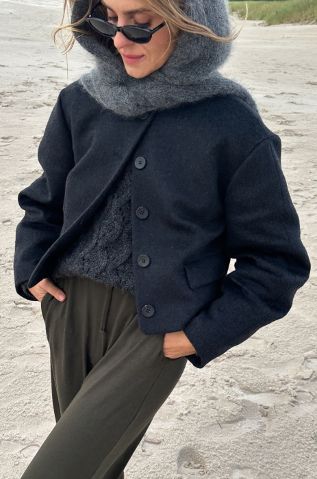 Krótka kurtka w kolorze grafitowym o pudełkowym kroju, która dzięki swojej minimalistycznej formie idealnie dopełnia jesienno-zimową garderobę. Wykonana z mięsistej tkaniny o wyczuwalnej strukturze. Obniżona linia ramion i zaokrąglony kształt rękawa nadają jej nowoczesnego charakteru.