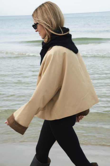 Jesienna kurtka o długości do bioder. Zapinana na guziki ukryte w listwie. . Kurtka posiada sztruksowy kołnierz, który dzięki odpowiedniemu skrojeniu, zawsze dobrze się układa. Tkanina, z której został uszyty, jest pokryta warstwą hydrofobową co sprawia, że ma właściwości wodoodporne.