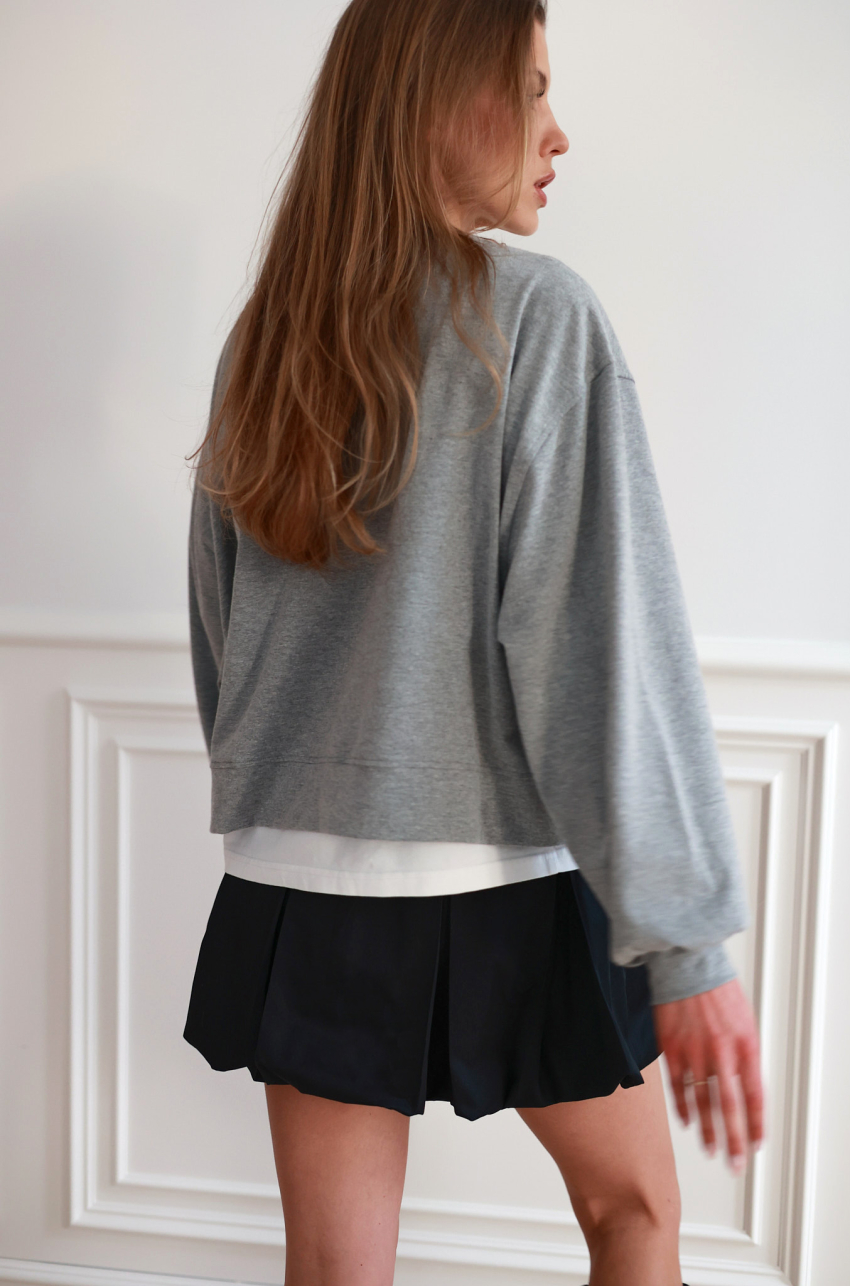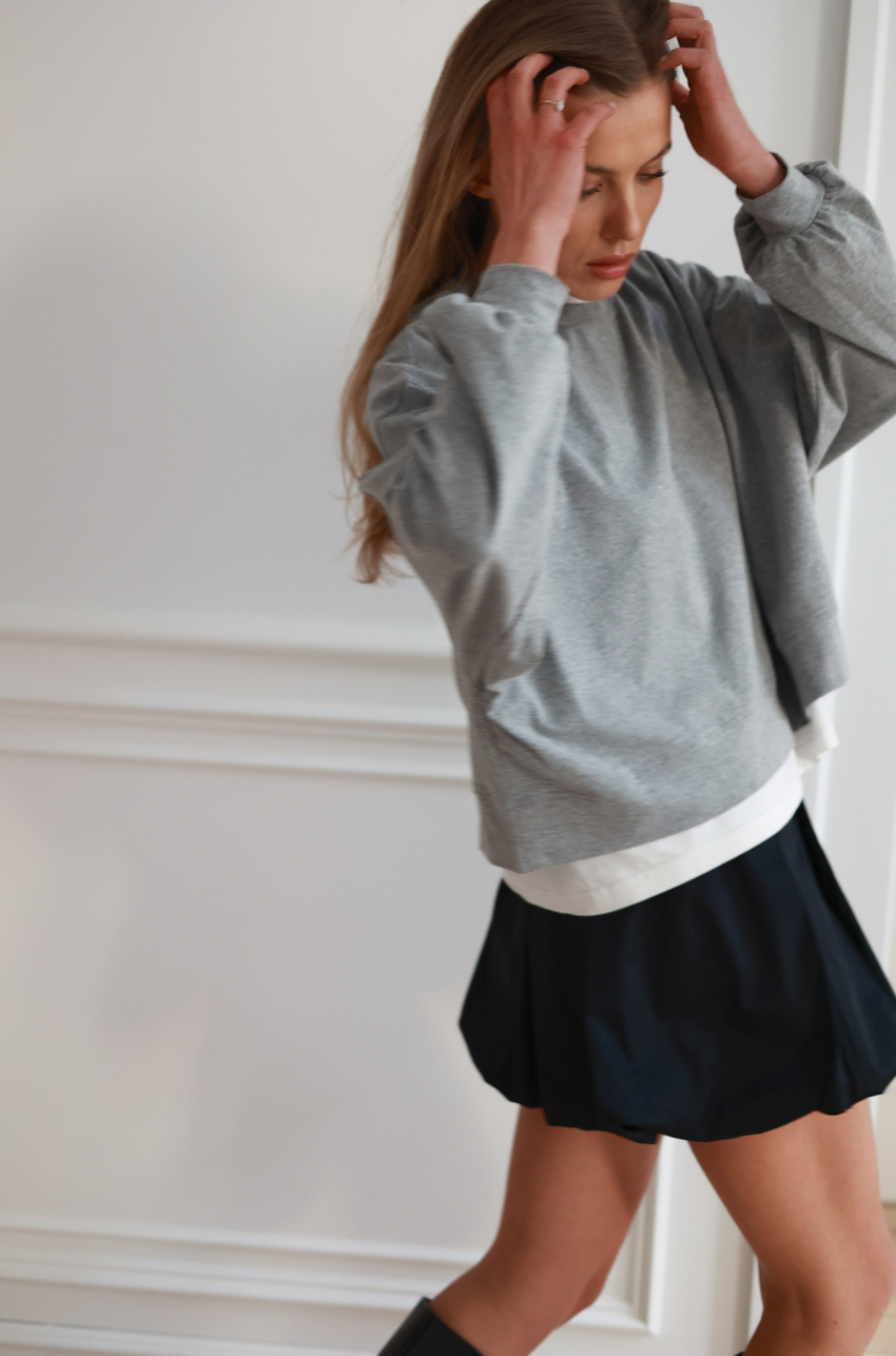 Spódnica mini typu bombka, wykonana z wysokiej jakości bawełny. Wyraźnie zarysowana objętość nadaje sylwetce lekkości i współczesnego charakteru, zachowując przy tym elegancką, uporządkowaną linię. Elastyczna talia odpowiada za komfort i naturalne dopasowanie, a konstrukcja modelu sprawia, że spódnica subtelnie pracuje w ruchu.