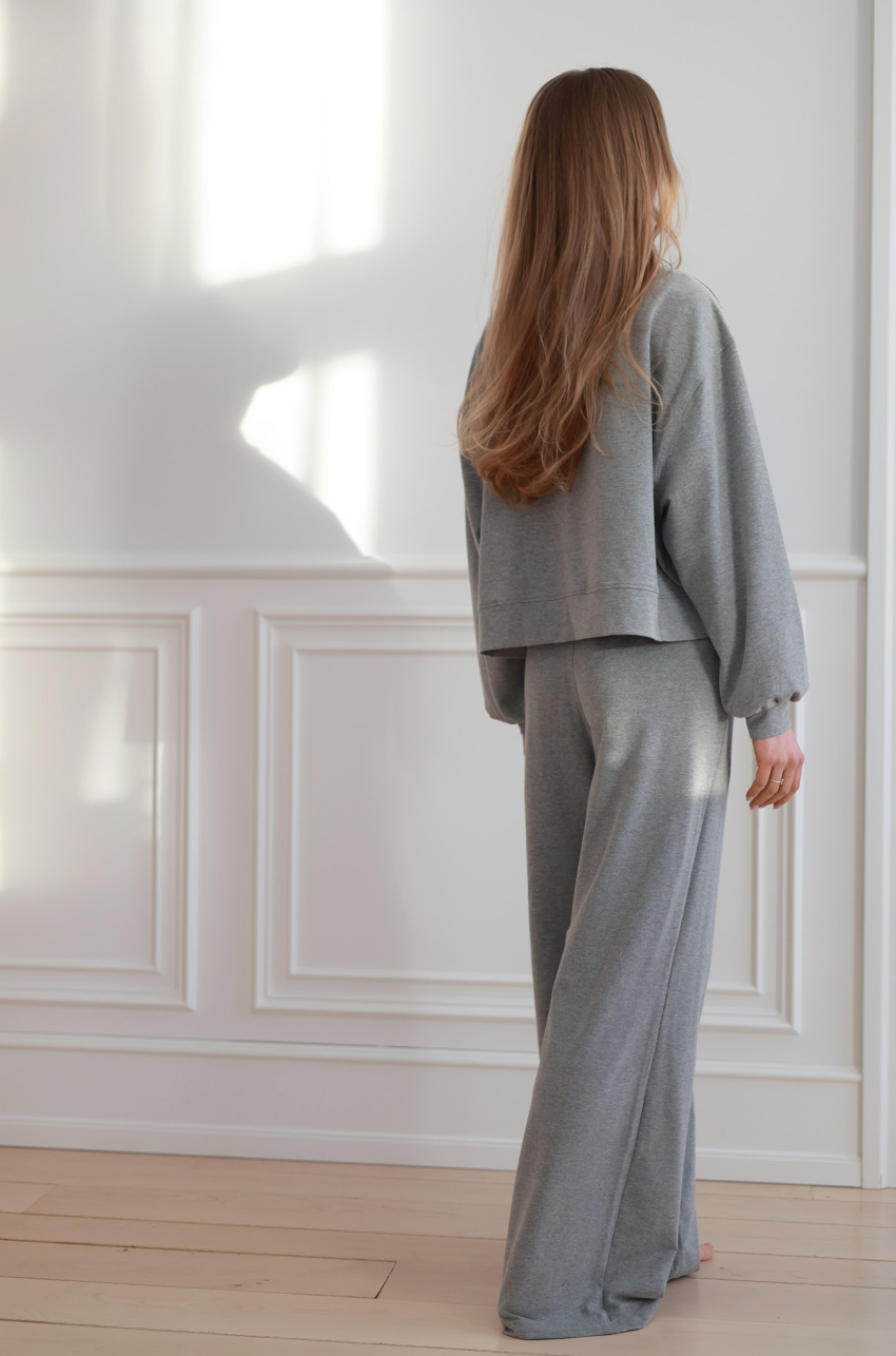Spodnie dresowe o luźnym kroju z prostą, szeroką nogawką. Wykonane z miękkiej, elastycznej dzianiny, która zapewnia komfort noszenia przez cały dzień. W pasie elastyczna gumka oraz regulacja za pomocą troczków. Noś w połączeniu ze spodniami Cassis tworząc set lub oddzielnie, dobierając dowolną górę.